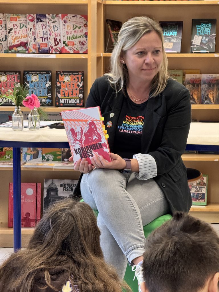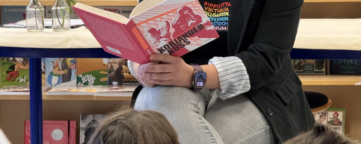 Am Vorlesetag fand am SPG eine besondere Veranstaltung statt: Die Bildungsstaatssekretärin Jessica Heide besuchte unsere Schule und las in der Schulbibliothek vor einer Schülergruppe aus dem Buch „Korianderkuss“ der Autorin Antje Herden. Der Roman hat 2025 den Saarländischen Kinder- und Jugendbuchpreis gewonnen und die von der Staatssekretärin vorgelesenen Auszüge fesselten die Zuhörerinnen und Zuhörer von Klassenstufe 5 bis 10 gleichermaßen.