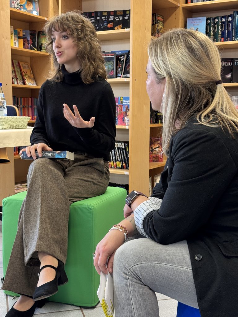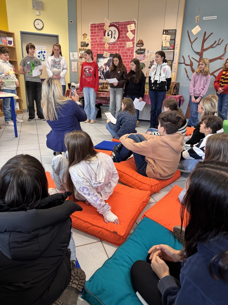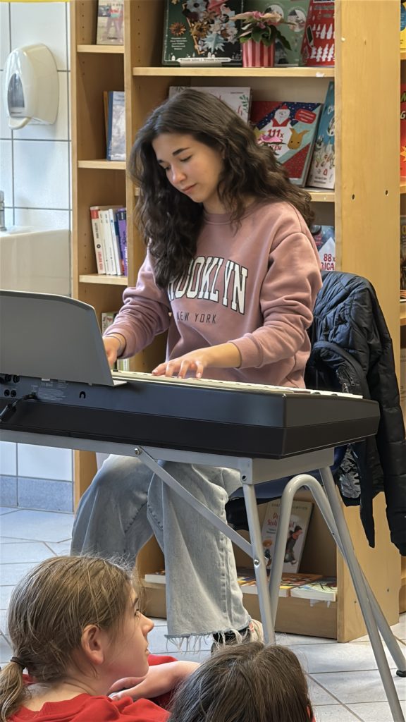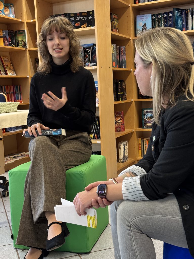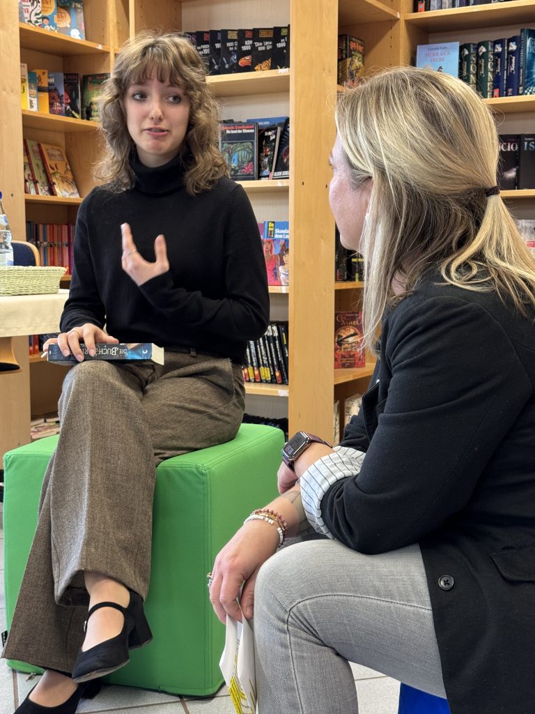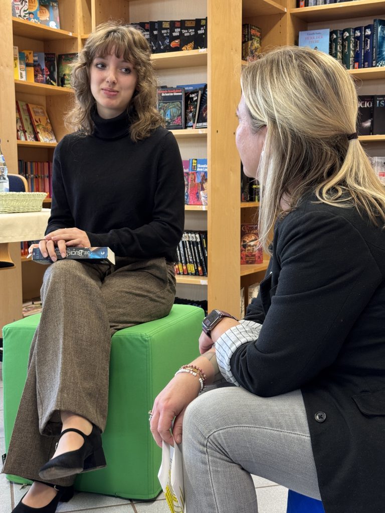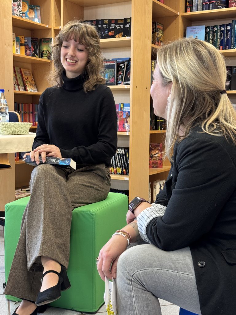 Musikalisch untermalt wurde die Veranstaltung von unserer Schülerin Esin Karatayli, Ava Dörr berichtete im Interview mit Frau Heide von ihrer Teilnahme am Vorlesewettbewerb, die sie bis zum Bundesentscheid nach Berlin führte, und die AG Schulbibliothek klebte gemeinsam mit Frau Heide die ersten Blätter an den „Lieblingsbücherbaum“, der mit den Buchtipps der Schulgemeinschaft wachsen soll.