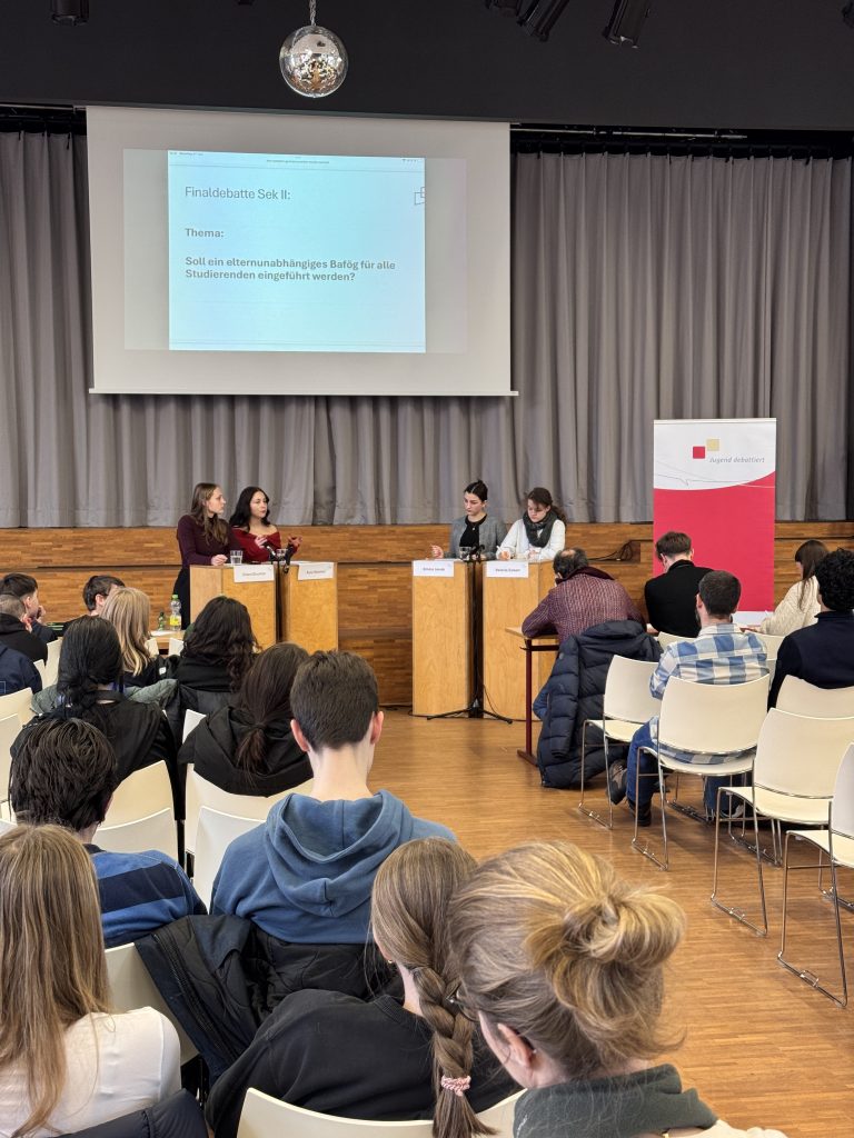 Heute ging Jugend debattiert am SPG in eine neue Runde! Bei unserem Schulfinale war die Aula vollbesetzt und die Zuschauerinnen und Zuschauer durften sich auf fünf Debatten freuen, etwa zu den Themen, ob Schülerinnen und Schüler ihre Schule selbst putzen sollen und ob eine allgemeine Dienstpflicht für Jugendliche eingeführt werden soll.